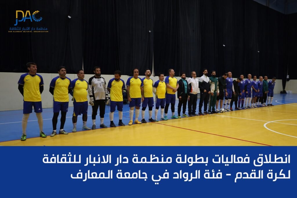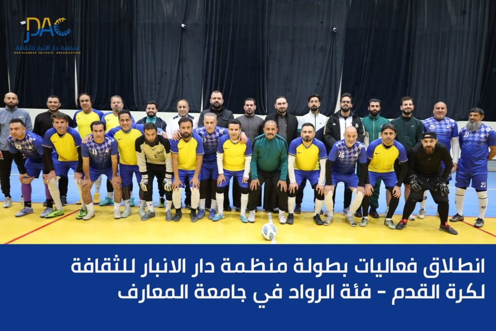 انطلقت اليوم فعاليات بطولة منظمة دار الأنبار للثقافة لكرة القدم لفئة الرواد على ملعب المرحوم أحمد راضي في جامعة المعارف، والتي تقيمها المنظمة بالتعاون مع الجامعة، بمشاركة عدد من الفرق الرياضية التي تضم نخبة من لاعبي كرة القدم من فئة الرواد.