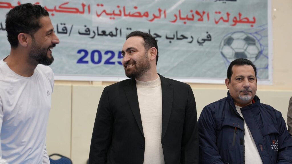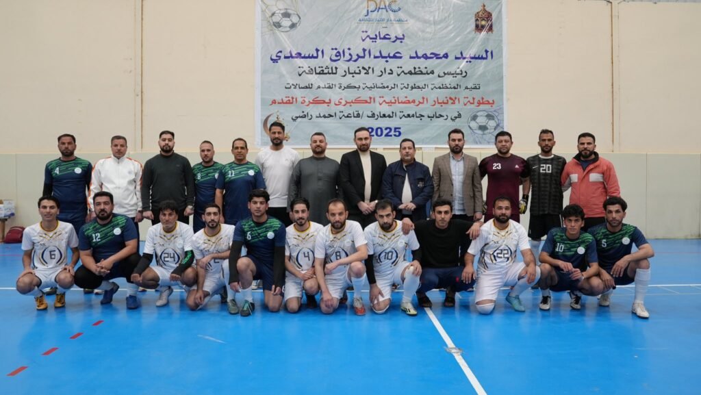 Mr. Mohammed Abdul-Razzaq Al-Saadi, President of the Dar Al-Anbar for Culture Organization and sponsor of the Grand Anbar Ramadan Futsal Championship, accompanied by members of the organization, visited the championship venues on Monday.